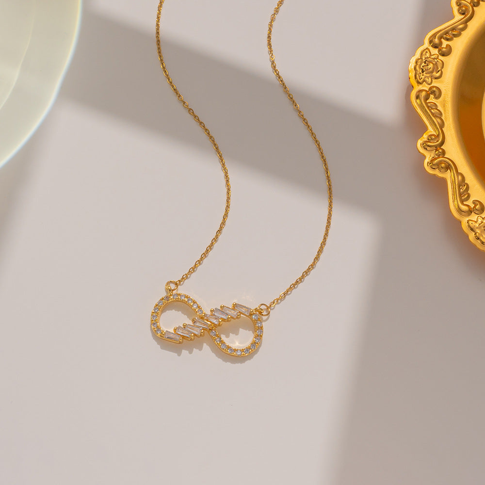 ART Geometric Titanium Steel 18K Gold Plated Full Diamond Infinite Love Necklace