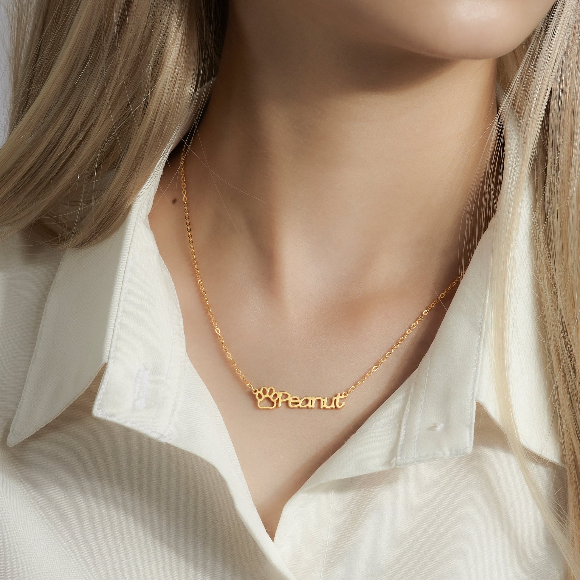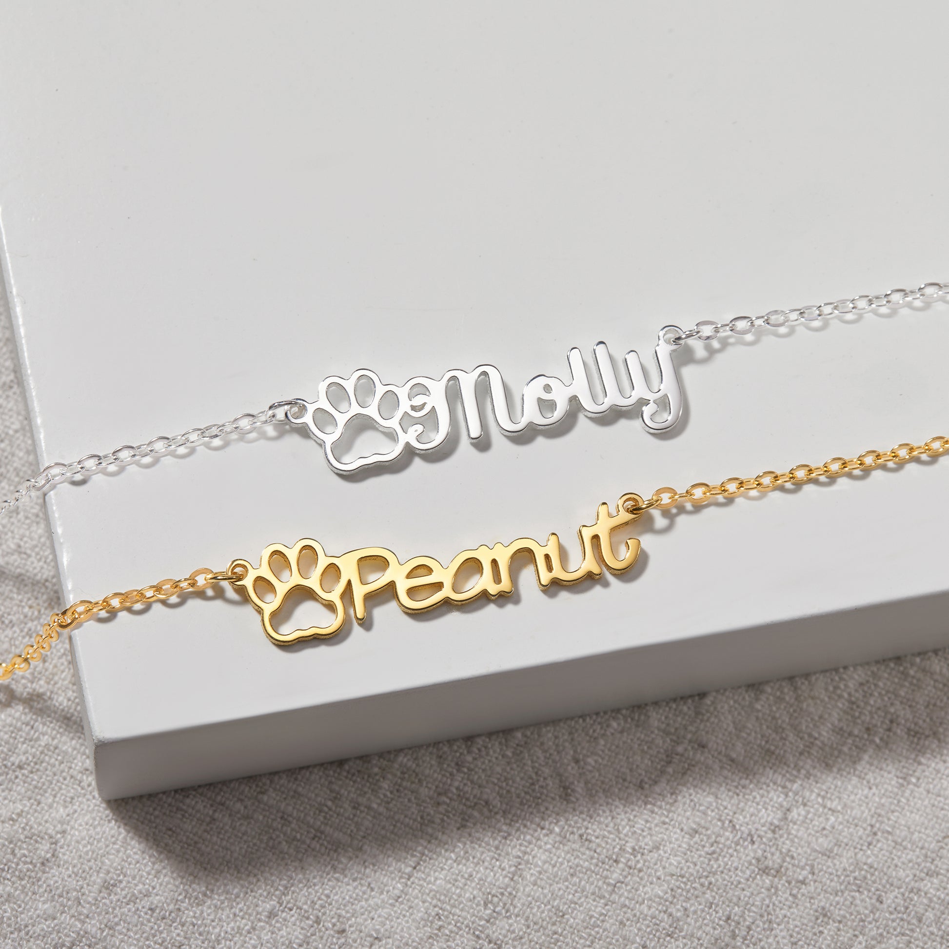 Dog Name Necklace, Cat Mom Gift, Pet Paw Necklace, Pet Lover Gift
