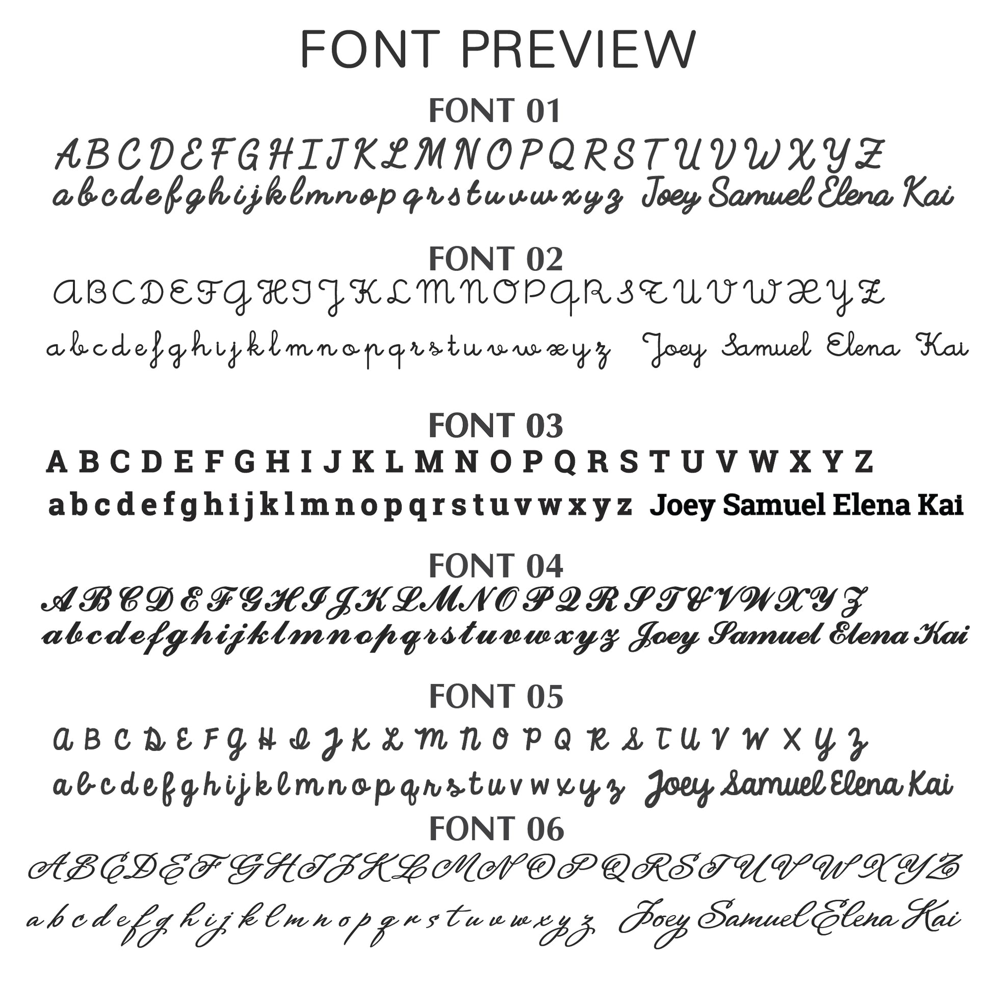 • Word limits: 3-5 characters/name, up to 4 names/bracelet.