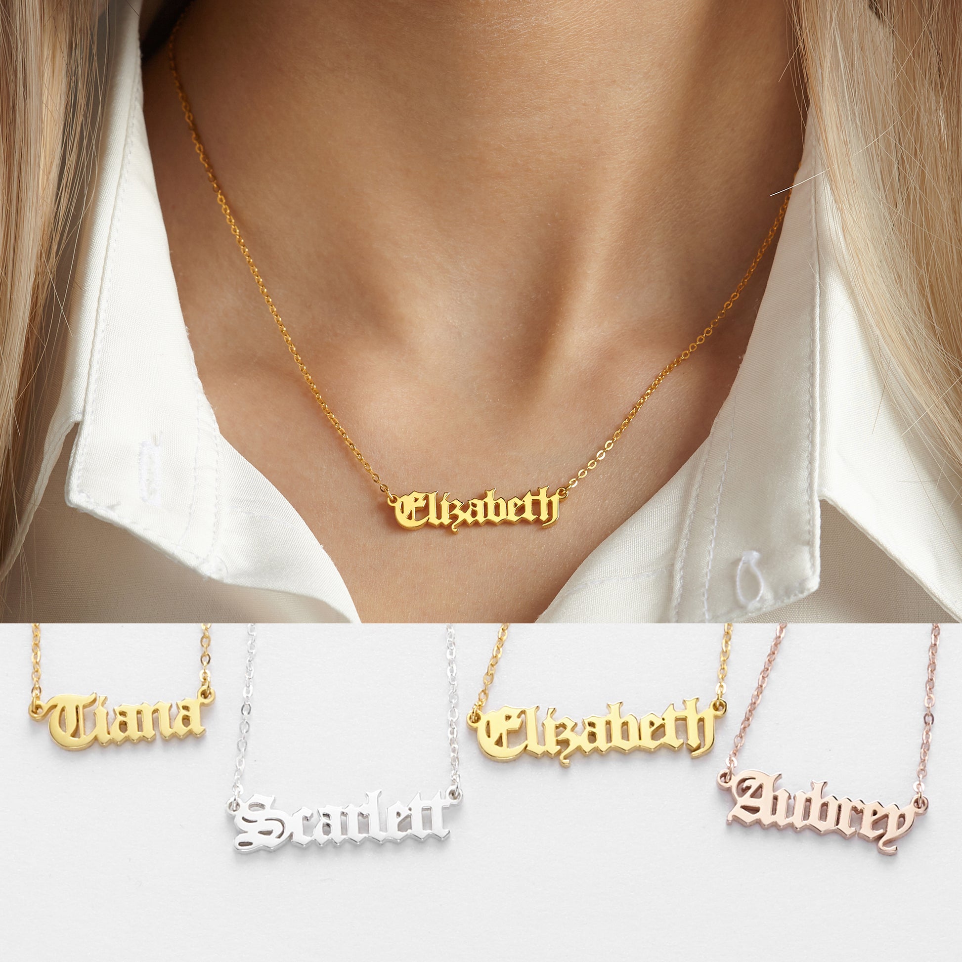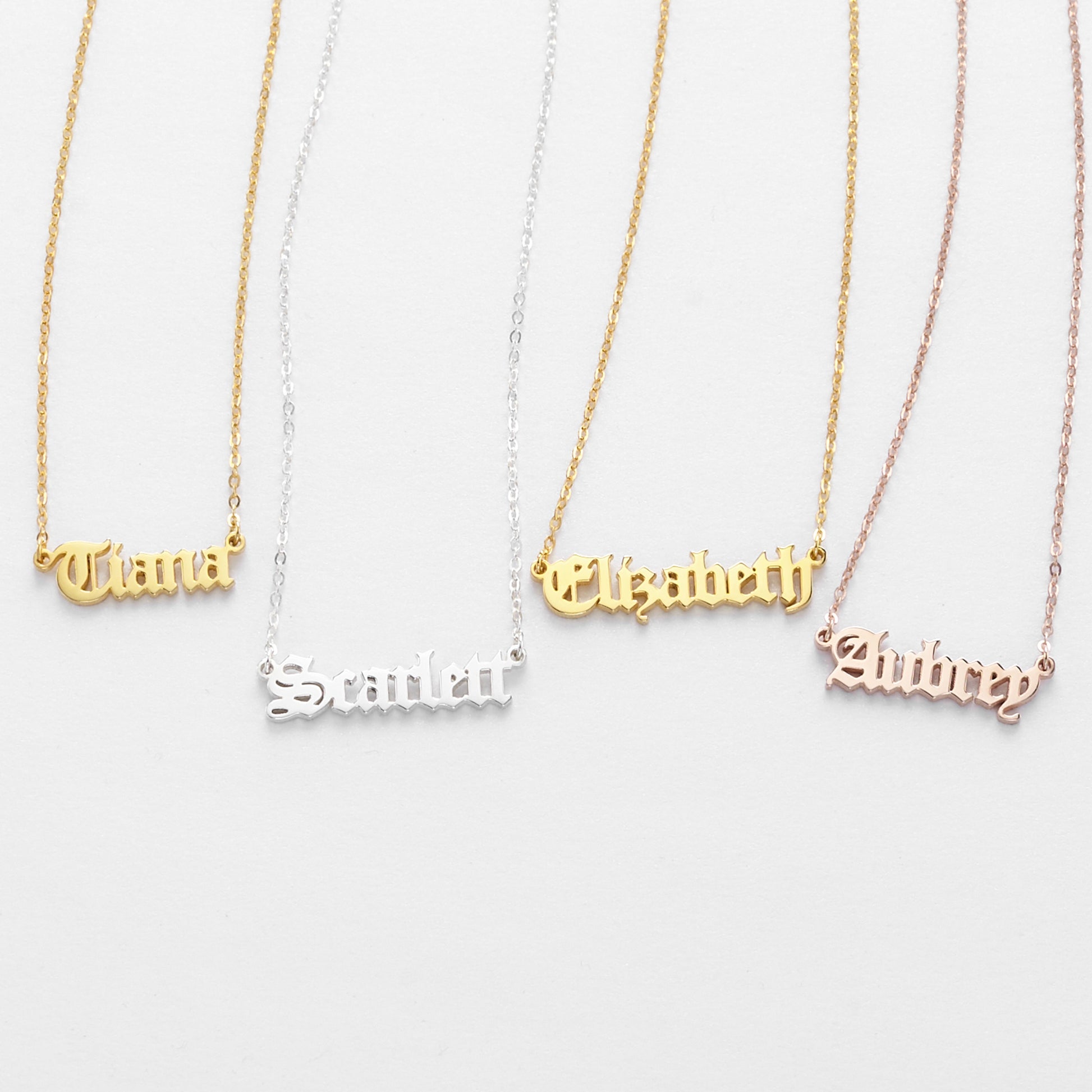 Old English Name Necklace, Teen Girls Necklace, Gothic Name Necklace