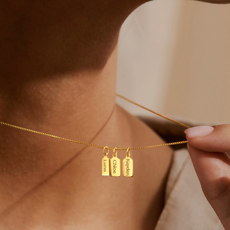 Capture the essence of motherhood with our exquisite necklace featuring charming pendants engraved with the names of your beloved children. Crafted with elegance and sentimentality in mind, this timeless piece serves as a heartfelt reminder of the precious bond between mother and child. Wear it close to your heart and carry the love of your little ones wherever you go. A perfect gift to celebrate the joy of motherhood or to cherish your own motherhood journe