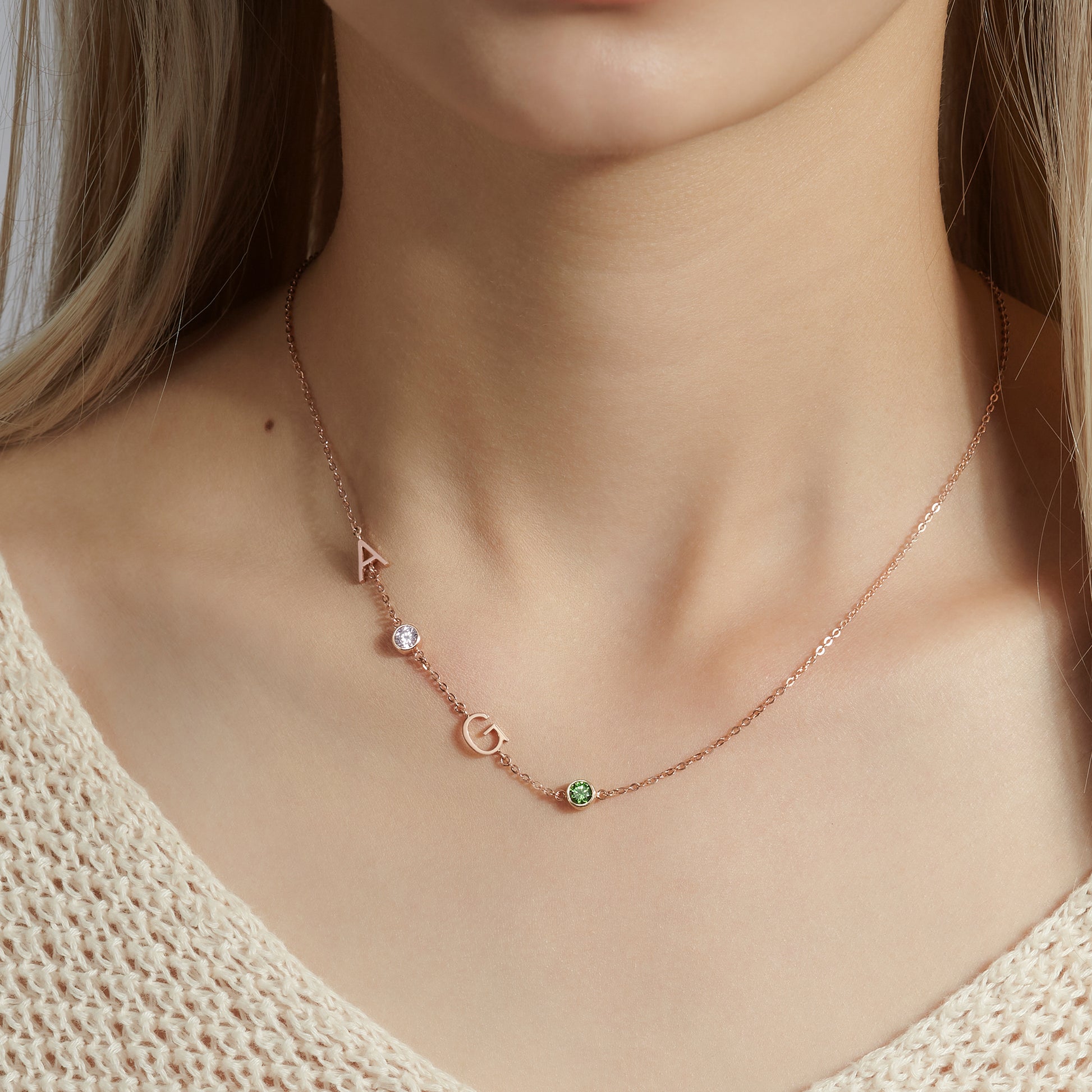 Please send us in the checkout note the following information: Enter the initial(s) + birth month(s) here. Regardless of whether you enter uppercase or lowercase letters, they will appear in uppercase. Eg: T - November B - July D - December • Up to 5 initials ABOUT THIS ITEM This delicate initial & birthstone necklace is perfect for a mom who loves to carry her kids initials, now further personalized with a shimmering birthstones. Stunning choice as gift for a mother, our tiny initial necklace with stones is perfect as a unique gift. P R O D U C T • I N F O ✅MATERIAL: High Quality Solid 925 Sterling Silver with 18K Gold, Rose Gold-Plated. Product is safe for sensitive skin, Lead-Free & Nickle-Free. ✅ENGRAVING: By default, silver item comes with BLACK engraving and gold-plated item comes with CLEAR engraving. ✅PERFECT UNIQUE GIFTS & PACKAGE: It's a perfect gift for yourself and your loved ones: your mother, friend, girlfriend, grandma, sister, wife, daughter on Anniversary, Birthday, Special Occasions, Christmas' Day, Wedding and much more! All of our jewelry are handmade from scratch and packaged with care in our workshop. Come in complimentary gift box. ✅SATISFACTION GUARANTEED: Each item is carefully handcrafted & undergoes a rigorous inspection process to ensure our products meet the highest possible standards. All engraving comes with a satisfaction guarantee.